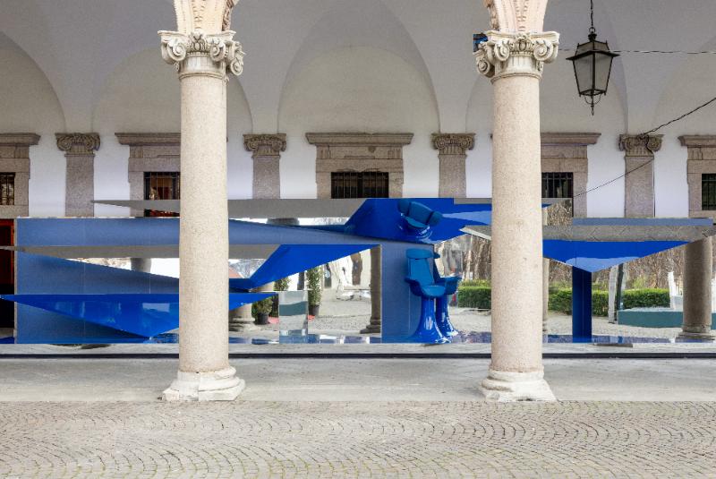 L’opera, esposta nel cortile d’Onore dell’Università degli Studi di Milano esplora il legame tra uomo e mare attraverso giochi di luce, superfici specchiate e un design innovativo che fonde estetica e funzionalità.