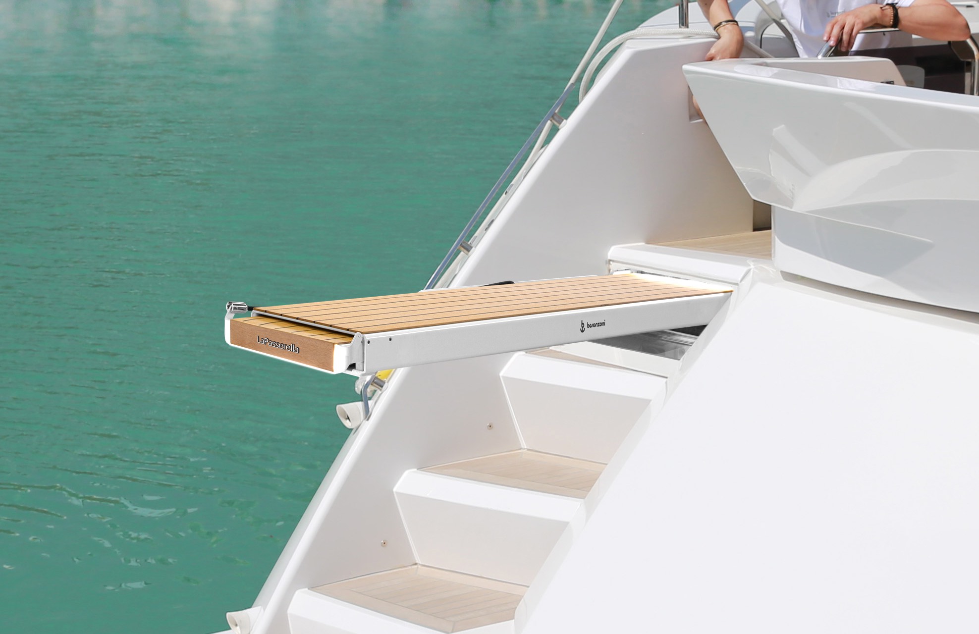 Sia per LaPasserella che per LaScala si può scegliere una pedana composta da un materiale sintetico innovativo realizzato utilizzando solo PVC vergine di prima qualità, caratteristica che lo rende un prodotto 100% “Green Ecological”.