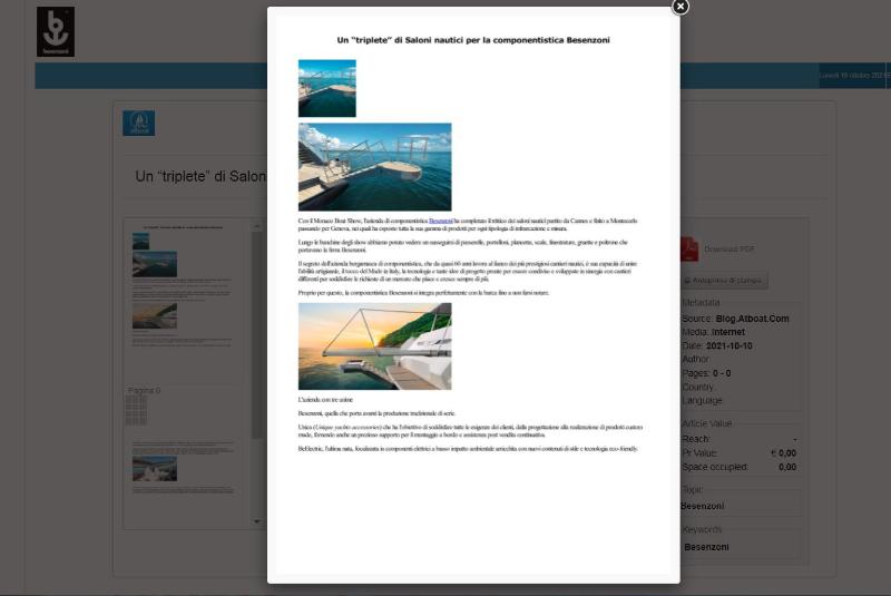 Con il Monaco Boat Show, l’azienda di componentistica Besenzoni ha completato il trittico dei saloni nautici partito da Cannes e finito a Montecarlo passando per Genova, nei quali ha esposto tutta la sua gamma di prodotti per ogni ...