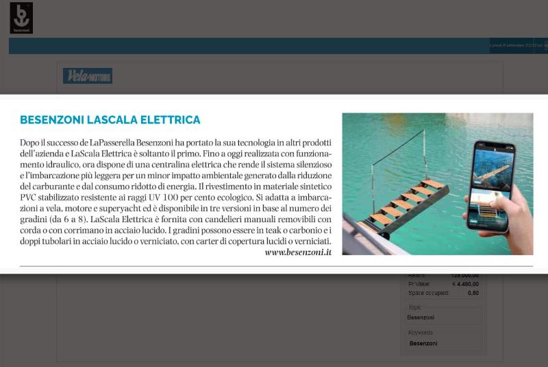 Dopo il successo de LaPasserella Besenzoni ha portato la sua tecnologia in altri prodotti dell’azienda e LaScala Elettrica è soltanto il primo. Fino a oggi realizzata con funzionamento idraulico, ora dispone di una centralina elettrica ...
