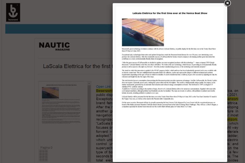 La revolución de la tecnología ecológica de Besenzoni continúa con la nueva Scala Elettrica, que se exhibirá al público por primera vez en el Salón Náutico de Venecia del 29 de mayo al 6 de junio de 2021.