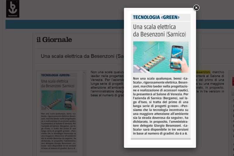 Non una scala qualunque, bensì «LaScala», rigorosamente elettrica. Besenzoni, marchio laeder nella progettazione e realizzazione di accessori nautici, la presenterà al Salone di Venezia. Per l’azienda di Sarnico (Bergamo), sul lago d’Iseo, si ...