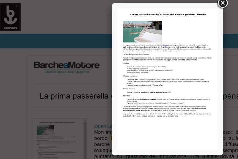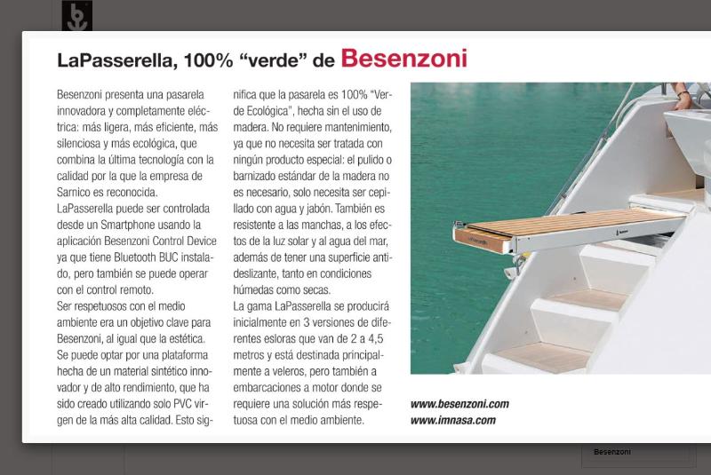 Besenzoni presenta una passerella innovativa e completamente elettrica: più leggera, più efficiente, più silenziosa e più rispettosa dell'ambiente, che unisce le ultime tecnologie alla qualità per la quale l'azienda di Sarnico è rinomata. ...