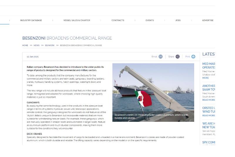 Italian company Besenzoni has decided to introduce to the wider public its range of products designed for the commercial and military sectors.