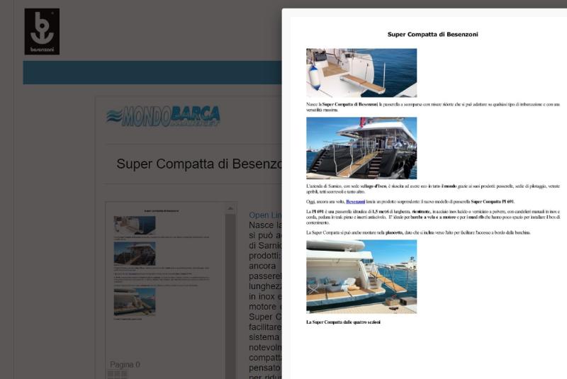 la passerella a scomparsa con misure ridotte che si può adattare su qualsiasi tipo di imbarcazione e con una versatilità massima. L’azienda di Sarnico, con sede sul lago d’Iseo, è riuscita ad avere eco in ...