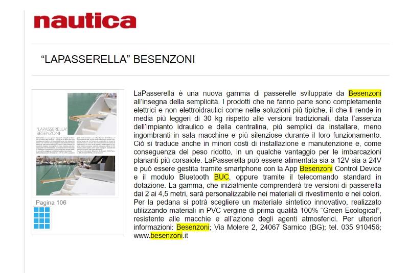 LaPasserella è una nuova gamma di passerelle sviluppate da Besenzoni all’insegna della semplicità. I prodotti che ne fanno parte sono completamente elettrici e non elettroidraulici come nelle soluzioni più tipiche, il che li rende in ...