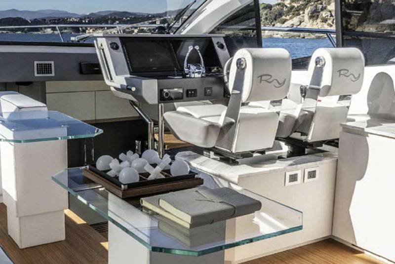 L'Atlantico con un gommone di serie (...) Rispetto a un gommone di serie, non cambia quasi nulla, a parte le sedute, Besenzoni, e una tenda avvolgente intorno alla plancia di comando. (...)