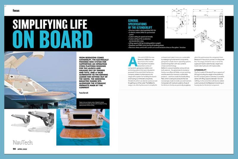 FROM BESENZONI COMES ILTENDERLIFT, THE ELECTRICALLY POWERED NEW SYSTEM FOR SUPPORTING AN OPERATING STERN PLATFORM DESIGNED FOR THE LAUNCH AND HAULING OUT OF TENDERS AND TOYS, AND A VALID ALTERNATIVE TO THE BATHING LADDER FOR GETTING OUT OF THE ...