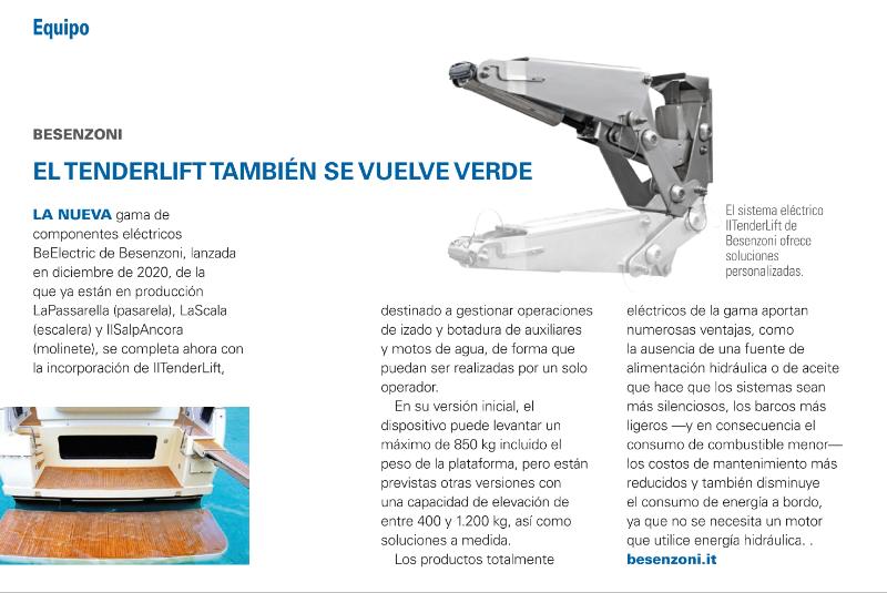 La nueva gama de componentes eléctricos BeElectric de Besenzoni, lanzada en diciembre de 2020, de la que ya están en producción LaPassarella (pasarela), LaScala (escalera) y IlSalpAncora (molinete), se completa ahora con la incorporación de ...