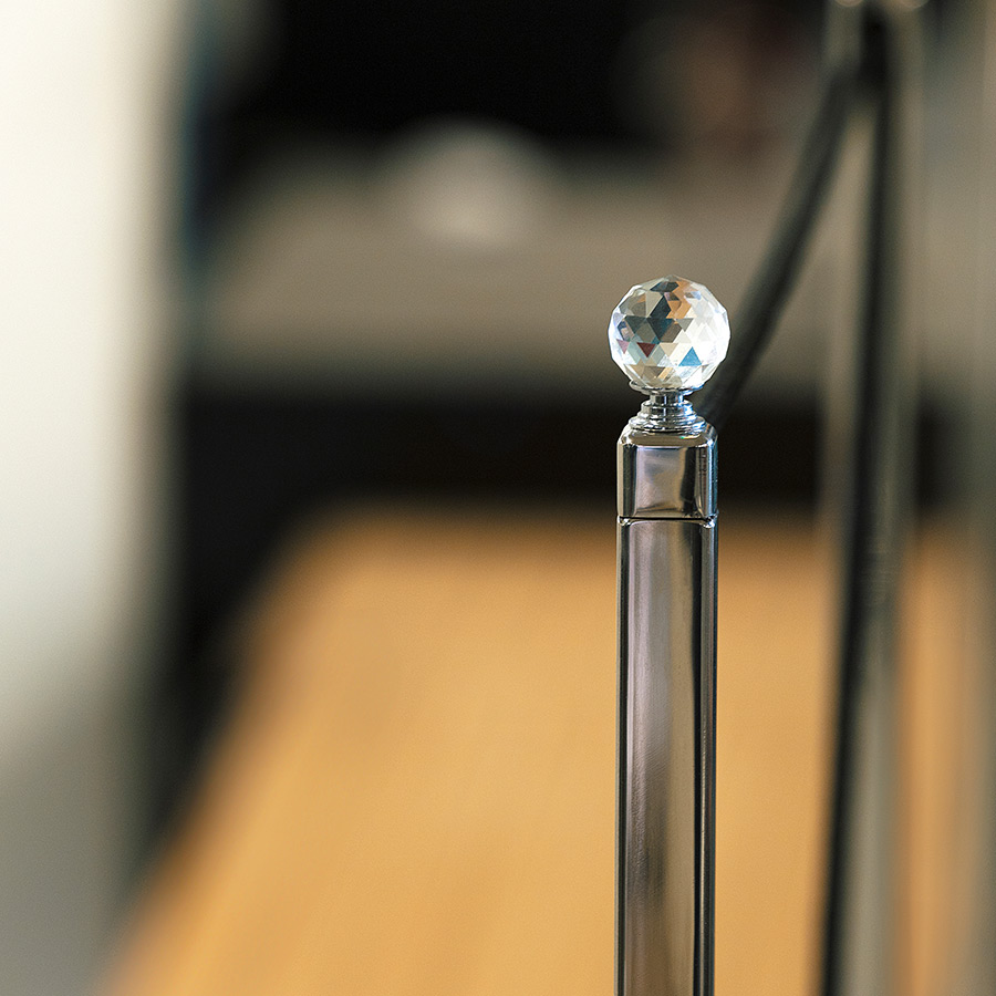 • Candelieri automatici in acciaio con corda su un lato e candeliere in punta